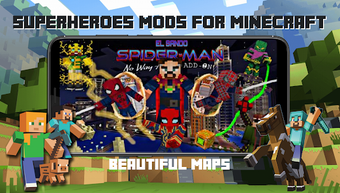 마인크래프트 게임 애호가들을 위한 슈퍼히어로 모드는 슈퍼히어로, 애드온, 맵, 텍스처로 게임 경험을 향상시키고자 하는 사람들을 위해 설계된 앱입니다. 스파이더맨, 배트맨, 슈퍼맨, 아이언맨, 헐크, 플래시, 원더우먼과 같은 인기 만화와 영화에서 영감을 받은 50개 이상의 슈퍼히어로로, 이 앱을 통해 당신의 내면의 영웅을 발휘하고 세상을 구할 수 있습니다.